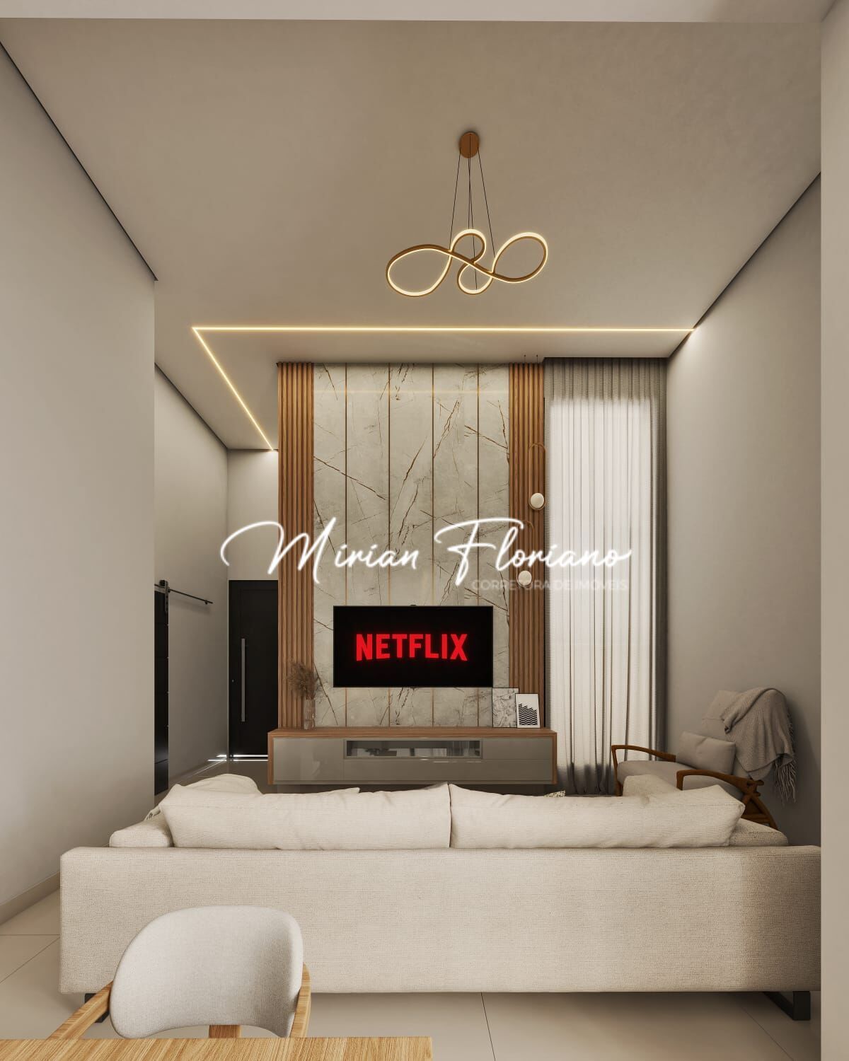 - Sala ampla com pé direito mais alto, proporcionando sensação de amplitude e ventilação.