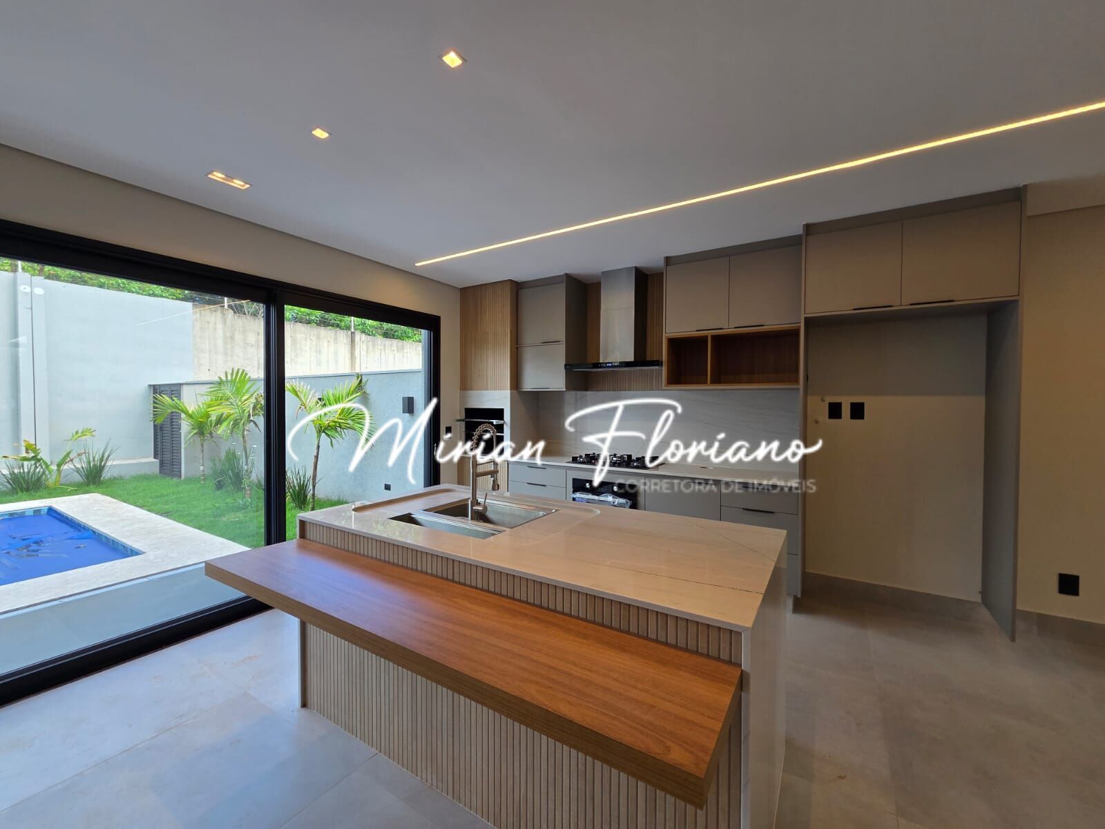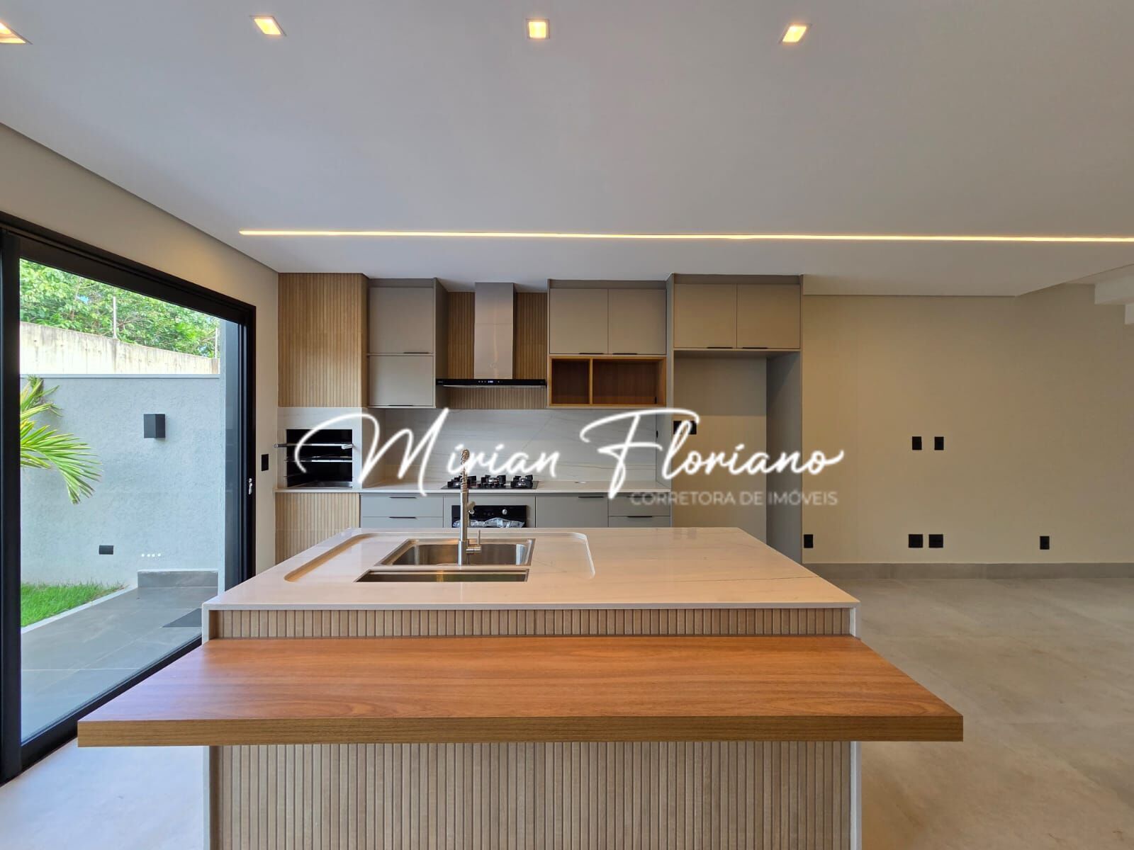 • Sala integrada à cozinha gourmet (cooktop, forno e coifa)